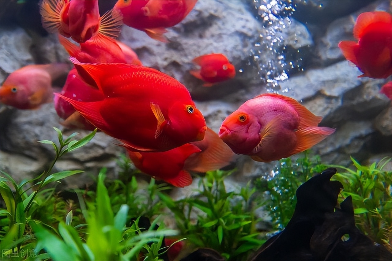 血鹦鹉也叫财神鱼,它们有着鲜红的和和圆胖的体型,看起来十分惹人喜爱,它们的体质也很强壮,对水质的适应性很强,不会挑食,所以很容易喂养。