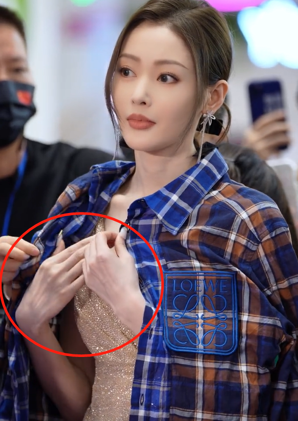 张天爱在候场的过程中,还特意给自己披上了一件衬衫,也正是因为她为自己整理衣服,才让我们看到了张天爱的手部究竟有多瘦,微微用力替自己整理了一下衣服,手背看起来就已经骨骼凸出,似乎除了一层皮肤,完全没有一点肉。