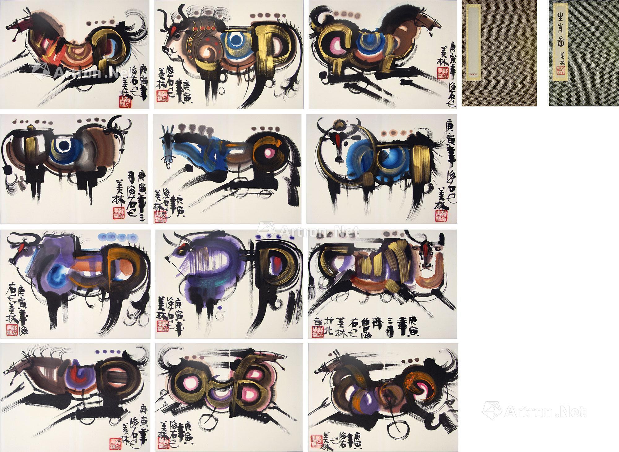 钤印:韩美林印、大吉祥、长乐、大悟成佛、佛果、随心、天机不可泄、肖形印