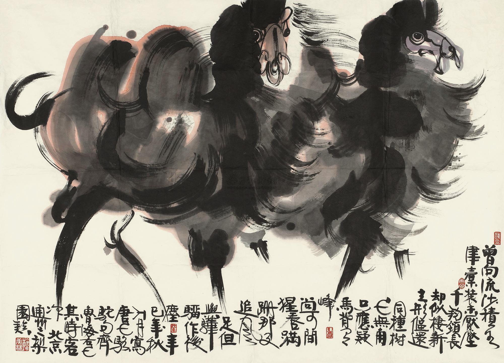 拍品名称:韩美林 辛巳(2001年)作 双驼图 镜心