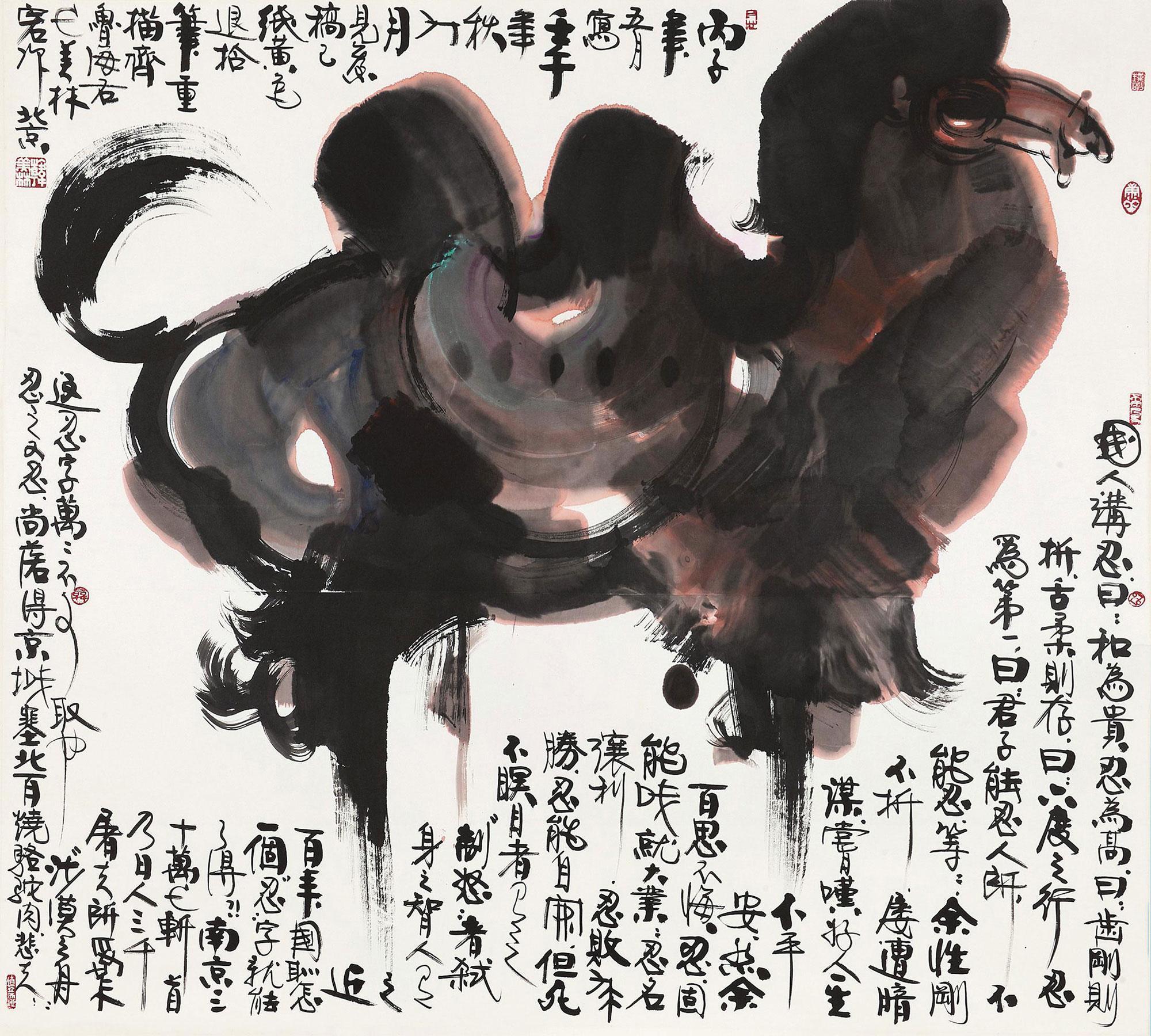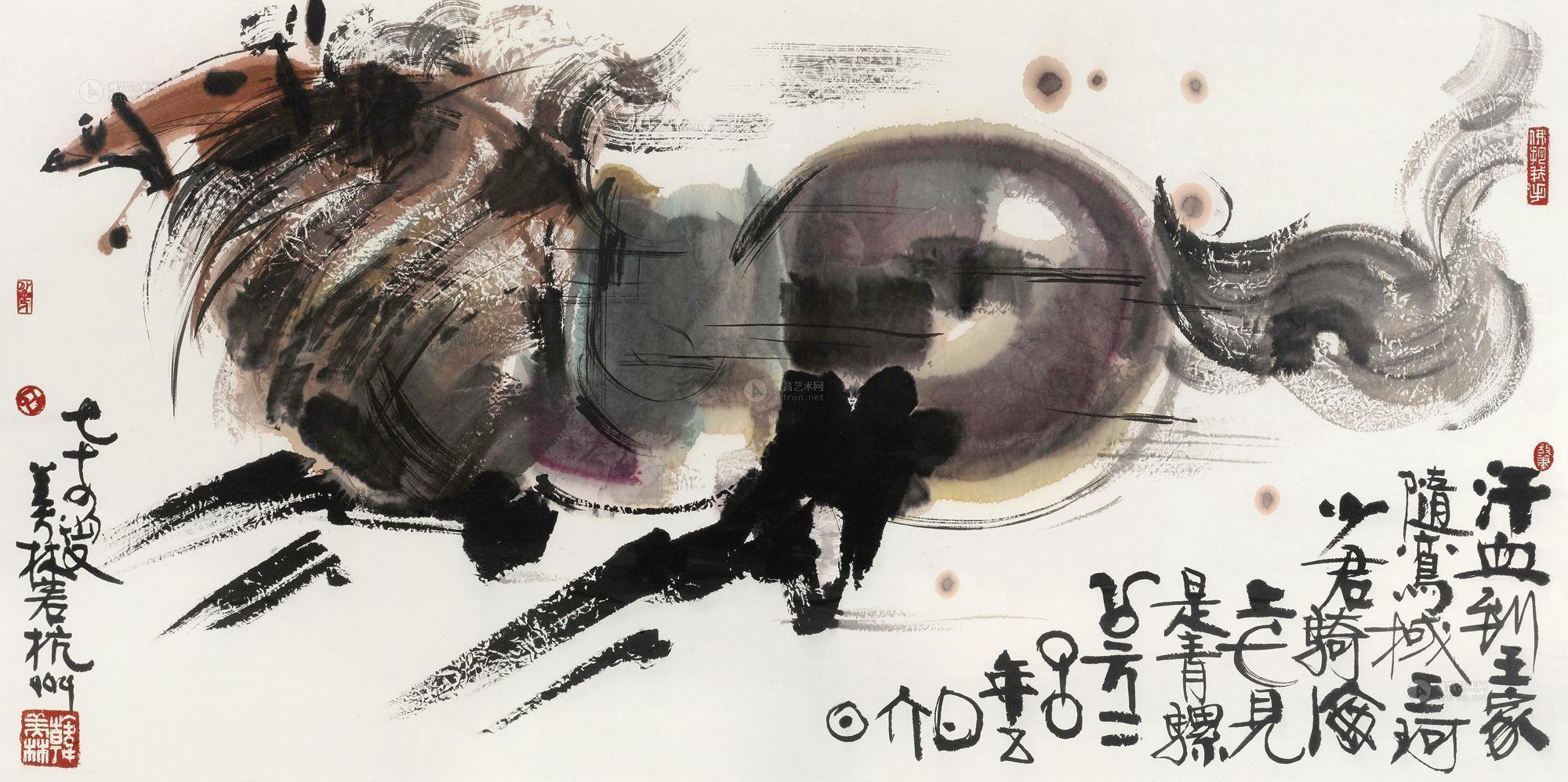 钤印:韩美林、韩、寸心、庚午、飞沙走石、直立天地、不为凡马、肖形印