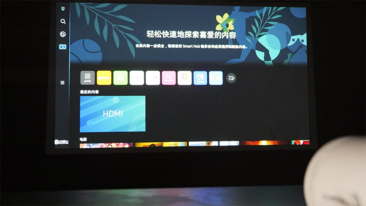 值得肯定的是,The Freestyle三星随享对投射墙面要求不高,即使是非白色的标准墙面也可拥有不错的投影观感。比如,评测环境的墙面为浅粉色,但我们从图上也可以看到精准的色彩。并且,在色彩方面三星的表现非常突出,其支持HDR10,拥有较高的对比度和鲜艳的色彩,适合观看一些电影大片,给娃看动画也更能保护眼睛。