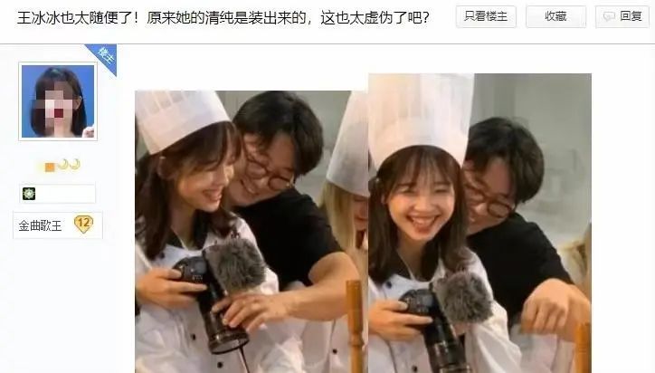 从照片上看,王冰冰似乎是被身后的男摄影师从后面抱着,两人还都笑得很开心,于是被骂: