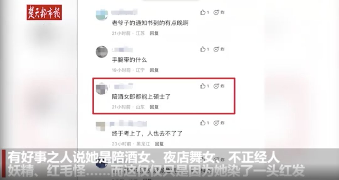 还有不怀好意的人搬运了她的照片,配上的内容却变成了 “老人带病考取研究生,娶了一个小女生”。
