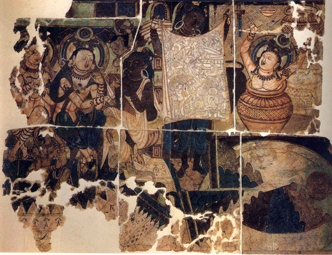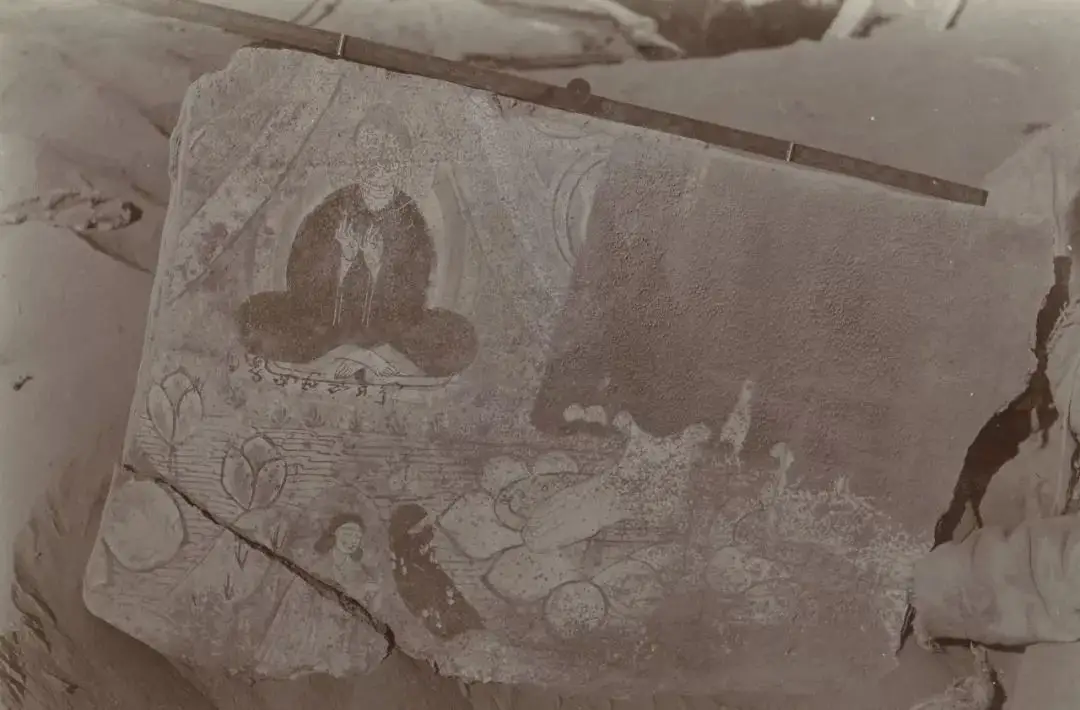 在柏孜克里克、克孜尔等石窟中,勒柯克对文物进行了毁灭式掠夺,他第一个将这些壁画直接用狐尾锯切割、简单用干草包裹,即运往德国。这些壁画的一部分目前尚存于德国柏林亚洲艺术博物馆。而其中相当一部分大型壁画,因为二战期间被固定在当时柏林民族学博物馆的展厅墙上,直接毁于1945年英美联军对柏林无差别轰炸的战火之中——本书封面用图克孜尔石窟第205窟左甬道内侧壁的4—6世纪《阿阇世王知佛涅槃故事图》即是其中之一。