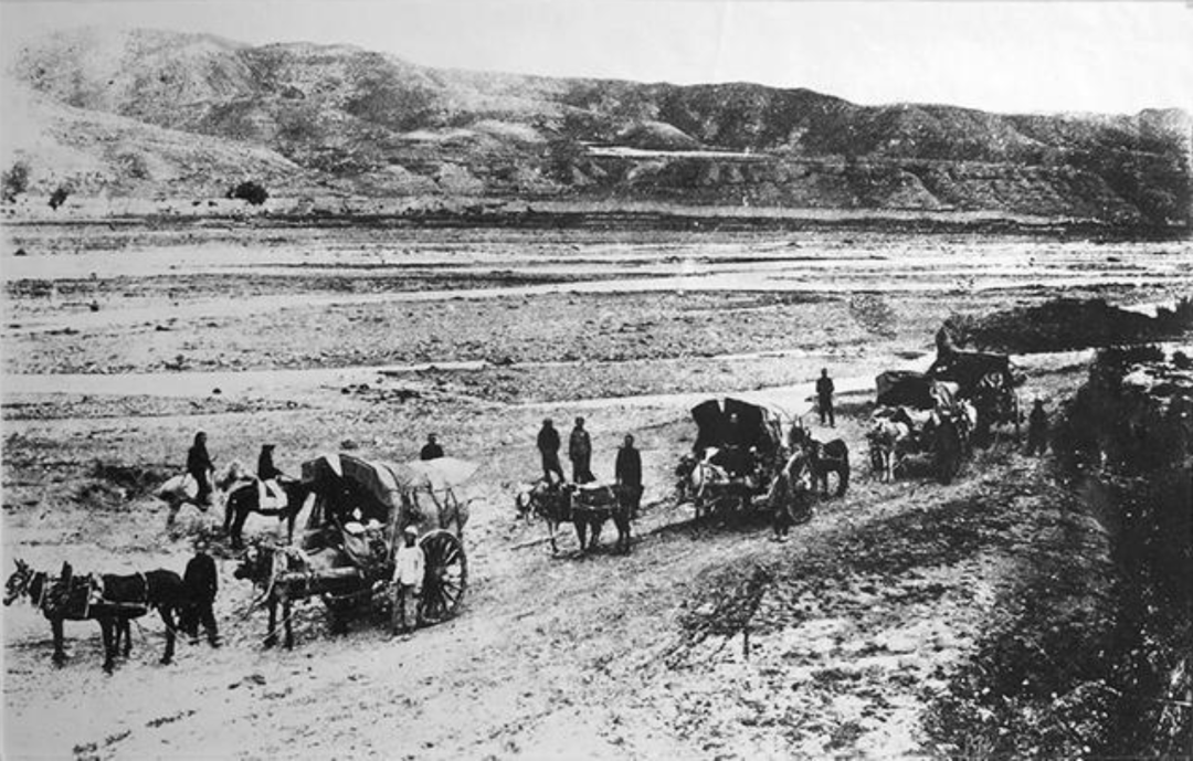 日本大谷探险队满载文物离开敦煌时的留影(1912年)