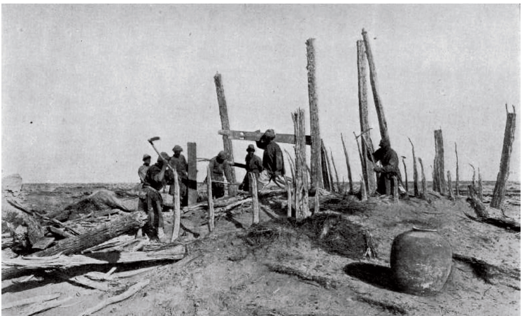 斯文·赫定探险队在发掘楼兰古城房屋(20世纪初)
