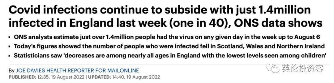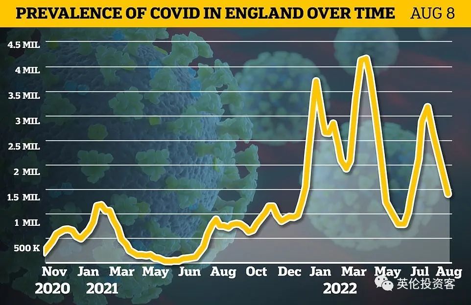 英国国家统计局的数据显示,在截至8月6日的一周内,英国有超过140万人呈新冠阳性,较截至7月26日的一周下降了32%。