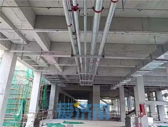 项目工期短、专业多、机电系统复杂,非吊顶区域面积大、明装区域内管线及设备安装精度高等诸多难题,给安装工作带来巨大压力。“八二”安装团队积极推广应用新技术、新材料,在风管安装过程中,通过推广应用无内支撑风管,既降低了建设成本、优化了建设效果,又进一步简化了施工工艺。
