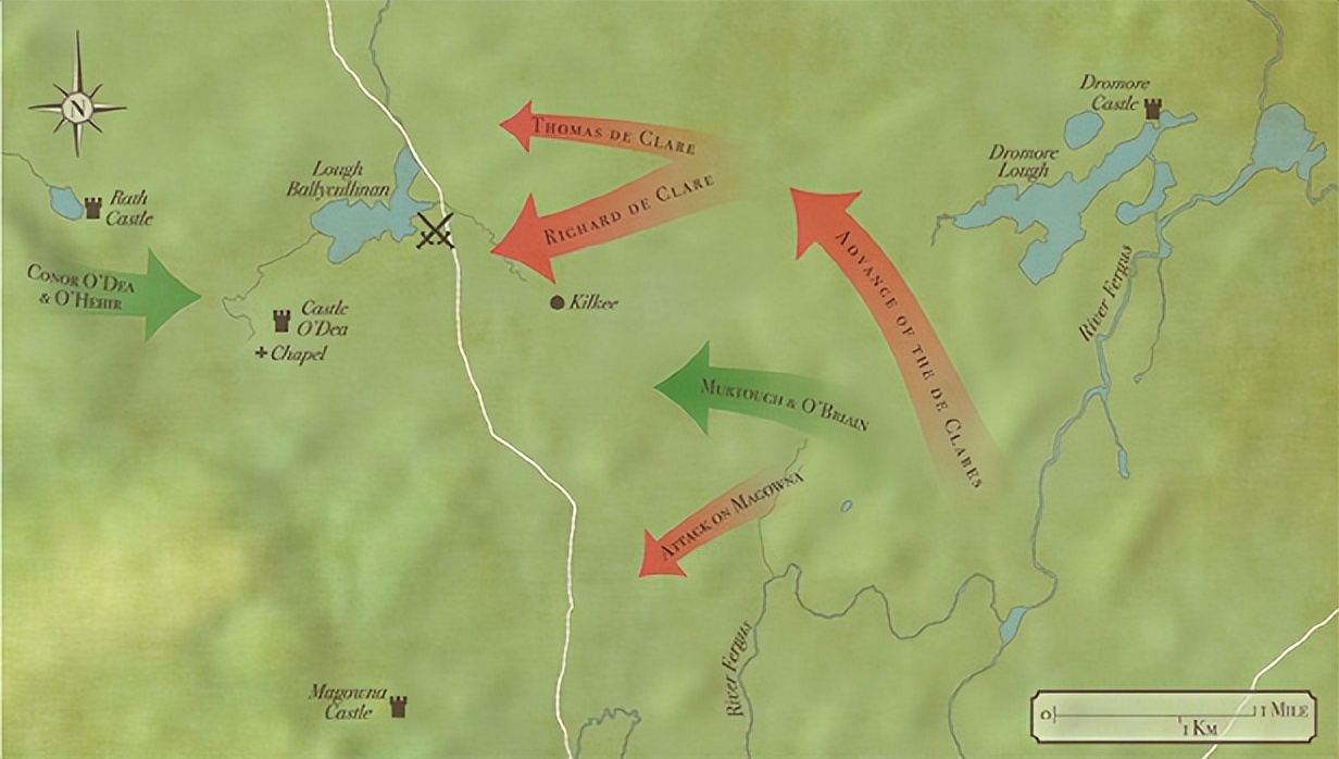 1318年,诺曼贵族理查德·德克莱尔带领一支大军南下入侵爱尔兰土著的托蒙德王国,这是少数几个还维持自身独立性的爱尔兰本土政权。