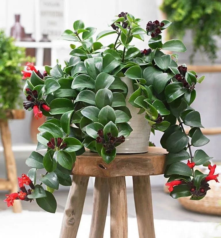 很多人都喜欢口红花,因为它的花朵如同口红一般,看起来精致迷人,搭配翠绿的革质叶子就显得清新自然。