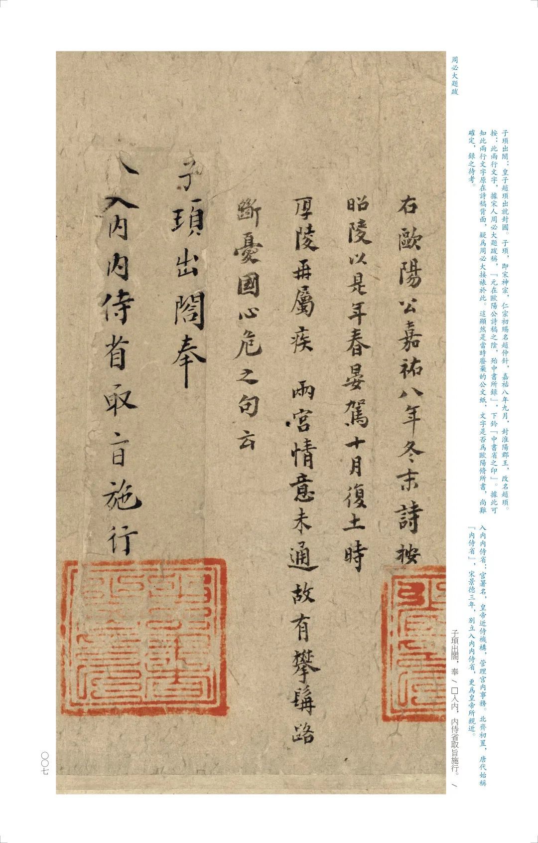 如欧阳修《集古录跋尾》,内容为金石考证,笔势敦厚凌厉,神采秀丽。《资治通鉴残稿》为司马光手书原稿,难得一见,其字兼有真、隶特点,用笔提按分明,结体规整扁平,别具面貌。