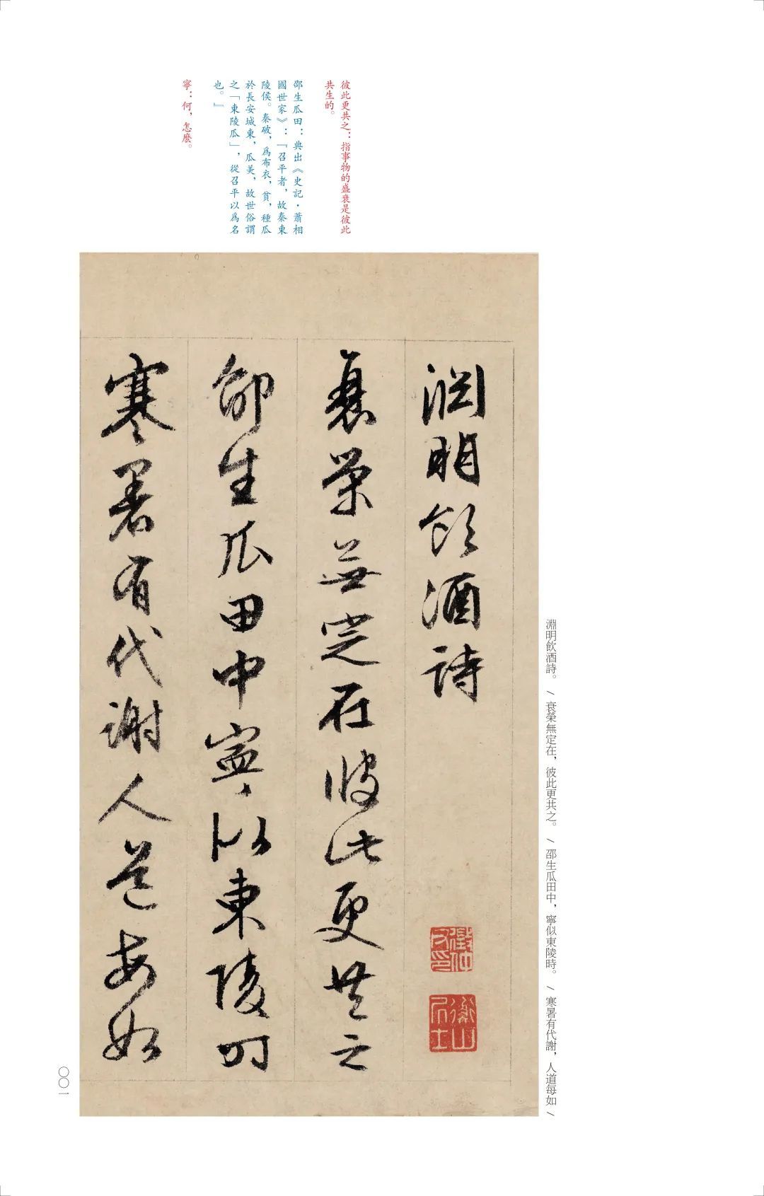 • 明清部分,首次独家出版了何创时书法艺术基金会的藏品四种:《文徵明行书陶渊明饮酒诗》《董其昌书论二则 临余清斋法帖卷》《张瑞图草书古诗十九首卷》《傅山草书与右玄诗册》。