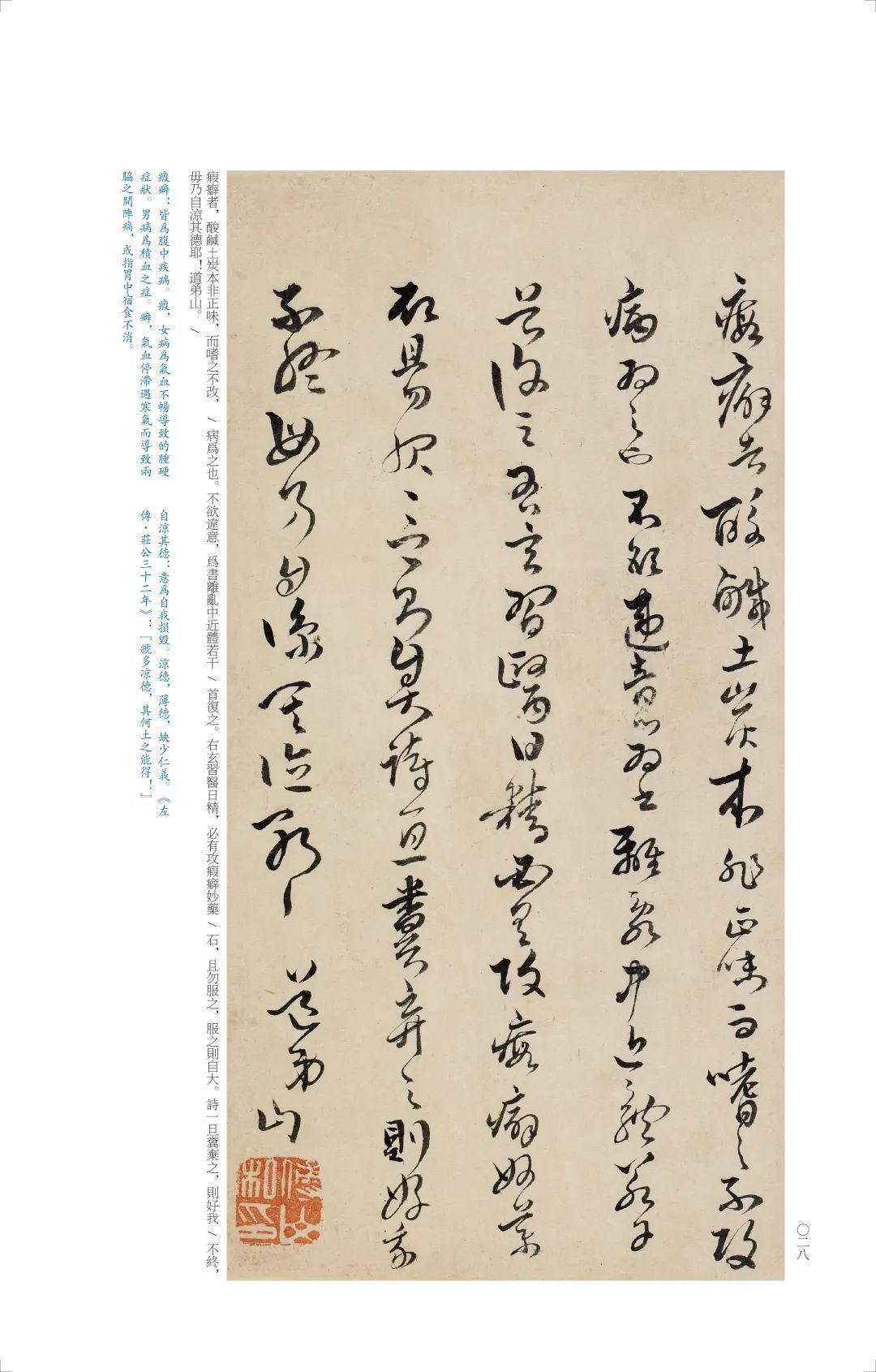 • 傅山草书《与右玄诗册》,纸本册页,何创时书法艺术基金会藏。是册书于戊子之夏,为傅山早年草书代表之作,用笔郁勃奇健,真率古朴,不拘成法,如其跋文所言“支离率易,不衷于法”者是也。
