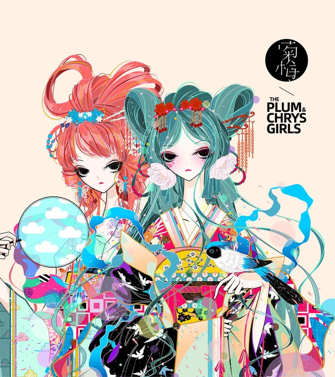“我比较喜欢观摩一些传统的老物件或艺术作品,有时也会去实地采风。一张仕女图、一首诗、一幅书法作品,都可以给予我无限的灵感。”欢叔将自己多元化的插画风格巧妙地与中国文化元素结合,以其“扁平”、“宅”、“核”、“潮”的独特视觉表达为基础,结合其极具有视觉冲击力的色彩体系,形成一种工业级的精致画面。