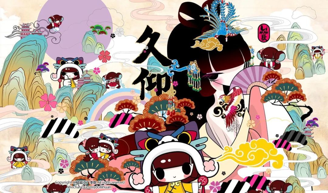 “我的华风少女系列的插画部分,会在国风文化的基础上融入年轻潮流文化的一些视觉表达。此外,像傀儡娃娃系列,我在创作时结合了哥特文化并与Lolita服饰做联动,这都是融合了不同的亚文化圈子。”因他本身就热爱这些不同的亚文化圈,并且也是真正的圈层玩家,所以他非常了解这些不同圈层之间的区别与边界,他的作品因此也更能够触动到不同圈层年轻人内心的真正诉求,同时通过跨圈,他的作品有效地实现了中国传统文化艺术在年轻群体中传播的目的。
