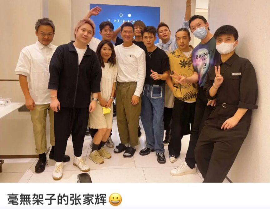 尤其离开了工作,张家辉整个人的气色都非常在线,此前张家辉到某理发店理发,与店里的理发师合影,影帝毫无架子站在众人中间,面带微笑尽显年轻,理发后的整体效果也非常帅气。