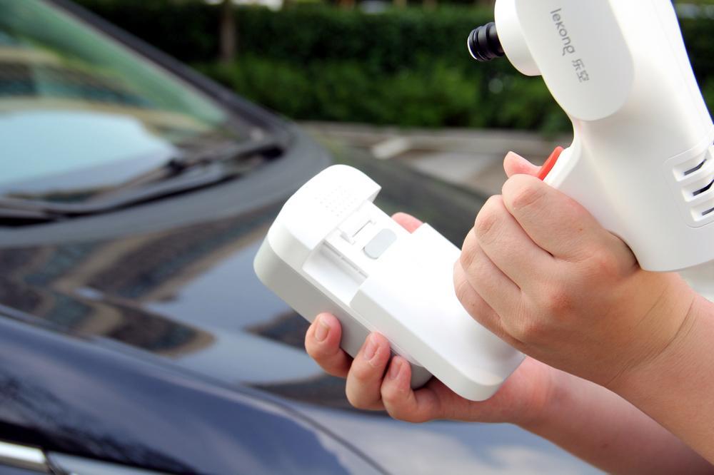 如今手机电池都内置了,很难找到可更换电池的手机了。而乐空洗车机的电池包,居然采用了可拆卸式设计,可以独立充电,平时只需要把电池包拿到家里充电就可以,特别方便。如果有需要,你还可以再自配一块电池,这样两块电池包替换,洗车时间可以翻倍了,没事还可以帮隔壁美女邻居一起把车洗了。
