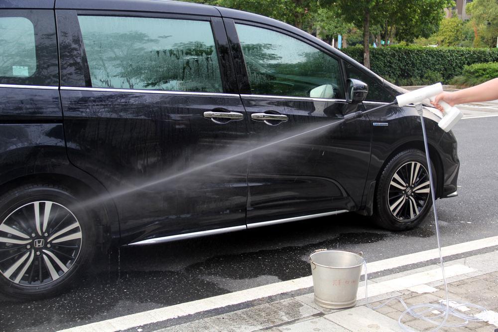 为了让大家更好地洗车,乐空给出了洗车四步曲,第一步就是预冲洗,这个主要目的就是把车身上的沙土给清理干净,以防后面擦车时,沙粒把车漆给刮花了。这里测试了洗我的奥德赛,尽管车身比一般的轿车要长一些,但使用随机配送的6米水管洗车,不用移动水桶就可以全部冲洗到位。