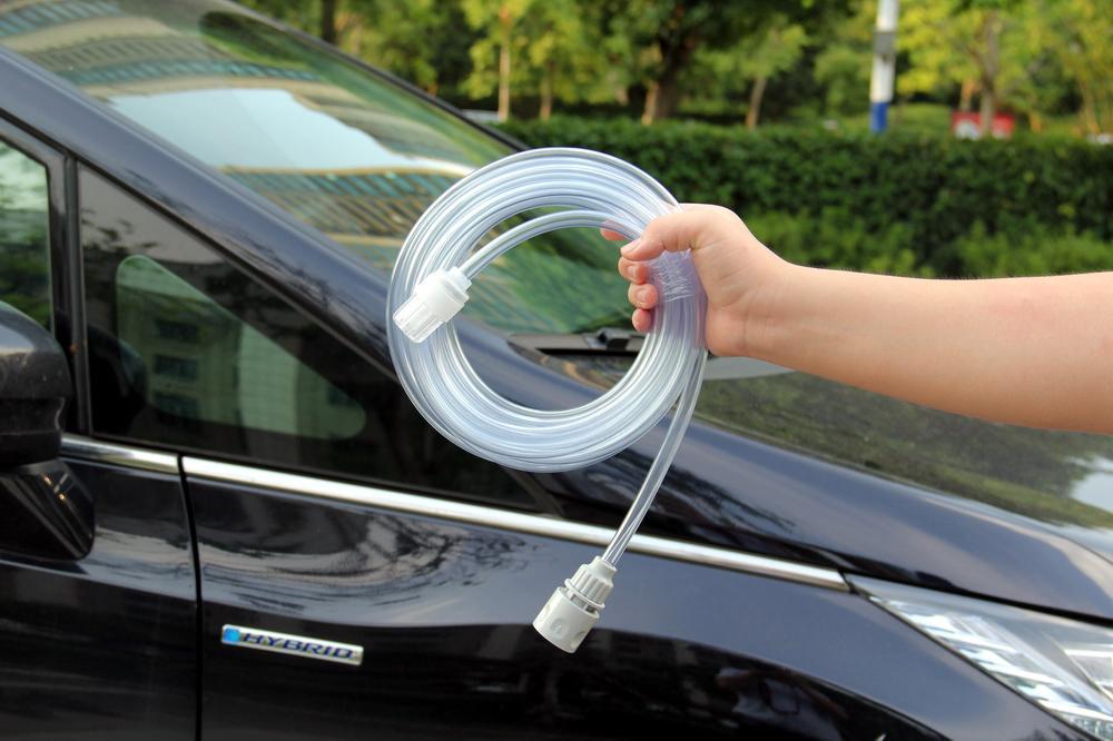 水管是透明式设计,很柔软,不容易打结,拉力也不错,不容易断裂。长度有6米,够长。水管一头是奶嘴快装头,安装拆卸都很方便,而且不容易漏水。另一头是带过滤保护的,这样可以防止水里的杂物进入洗车机。
