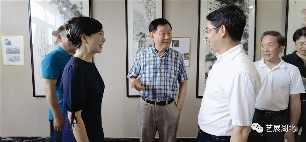 原湖北省副省长王少阶(左三)、湖北省文化和旅游厅副厅长陈武斌(右三)、利川市副市长周爱华(左二)、原省新闻出版局局长张儒芝(右二)等一起观展交流