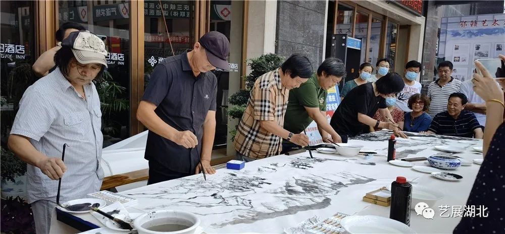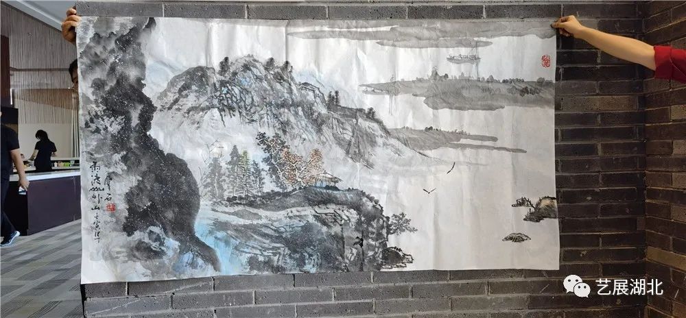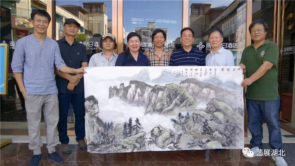 湖北书画院画家蒋昌忠、雷鸣、李也青、钟鸣、谭崇正、柳秀林与秦岭主笔的作品合影