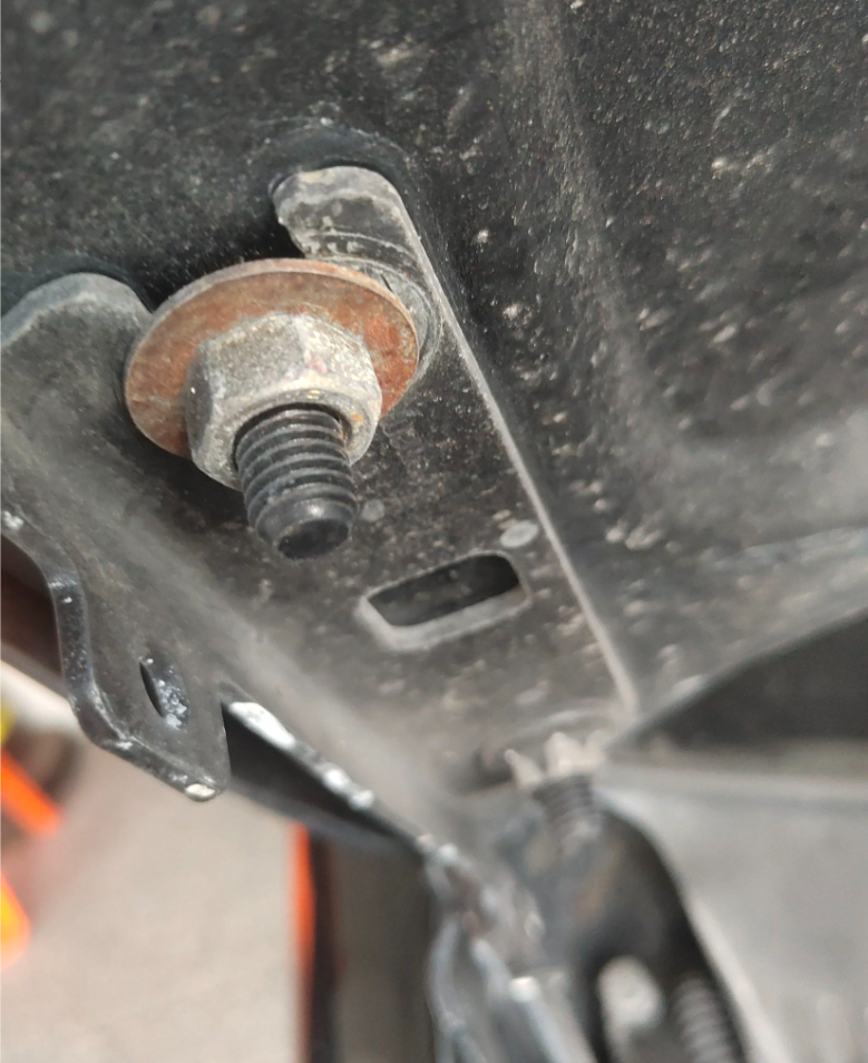 车头水箱框架也更换了,水箱框架的螺钉也不是原车的样式,估计是修理工随便找的螺钉!虽然水箱框架是拆装式的,维修简单,但能把水箱框架撞坏更换,车头事故的力度也算不小了!前杠跟中网就不用说了!