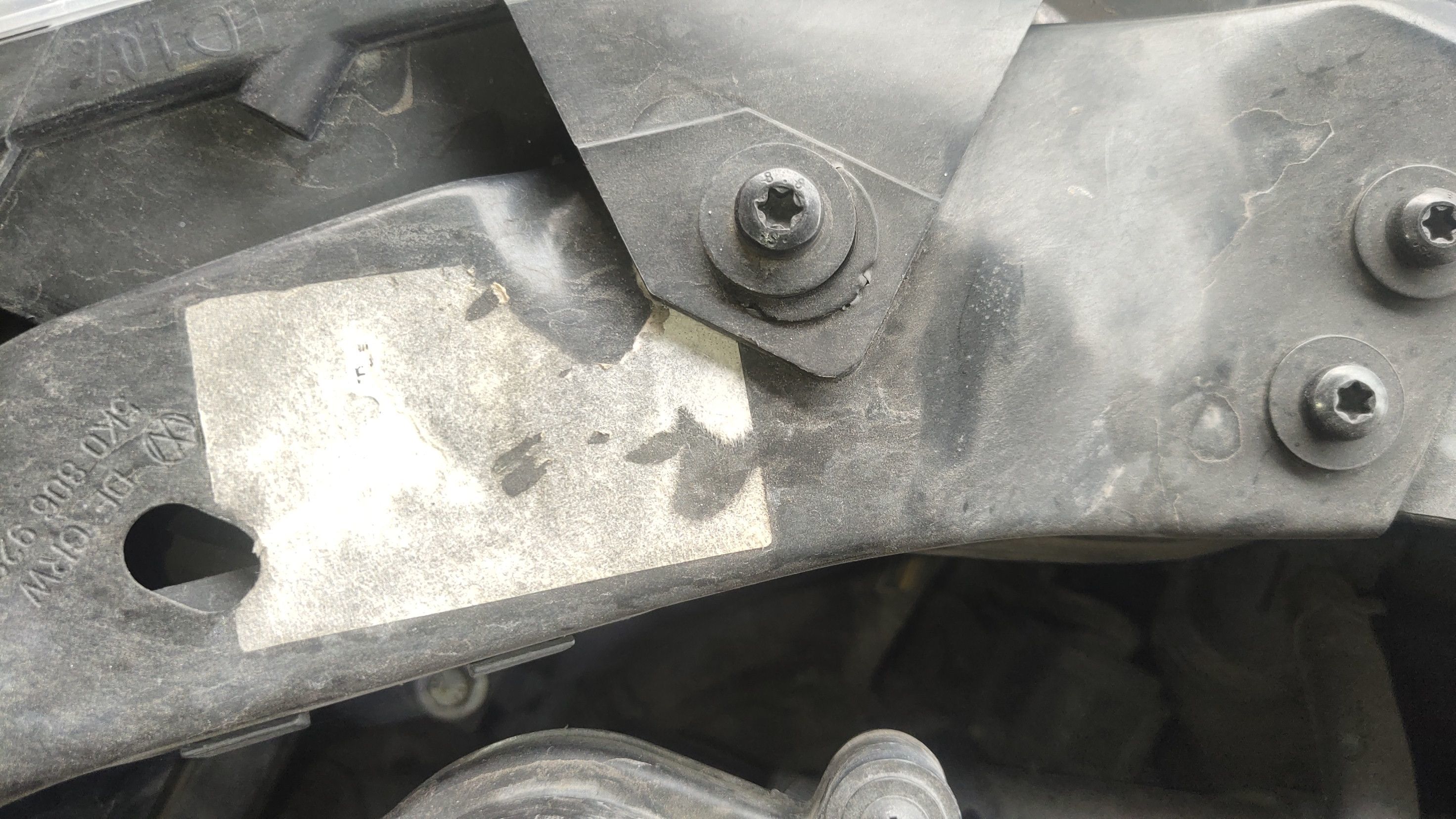 大灯的灯脚也换掉了,大灯自然也跑不掉!灯脚上面的贴纸虽然没有字了,但是英俊看了那么多高尔夫,没有哪个原厂是带这个东西的,只有后期更换的配件上面才会有!按照现在的检测,前嘴一套凑齐了!
