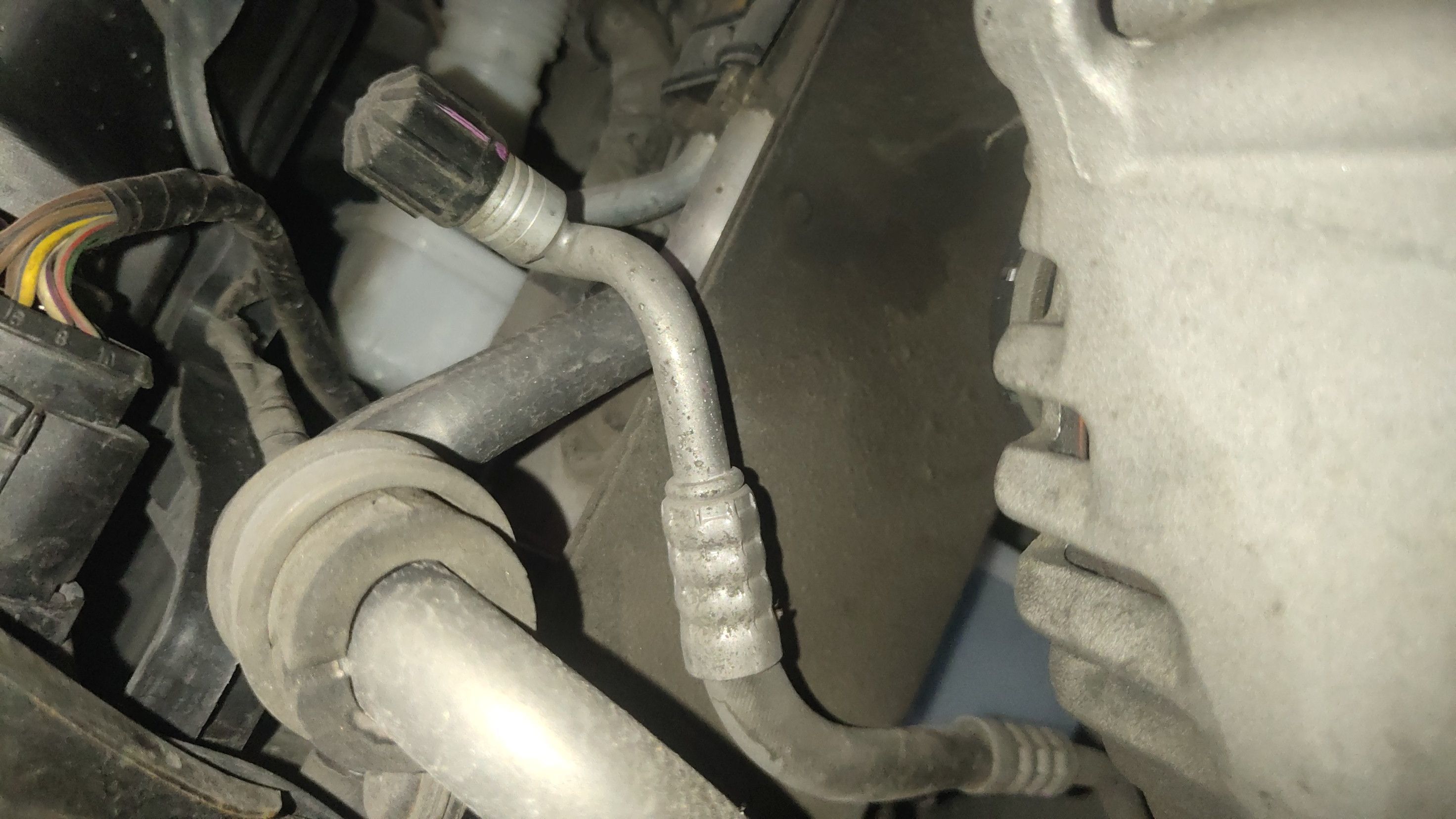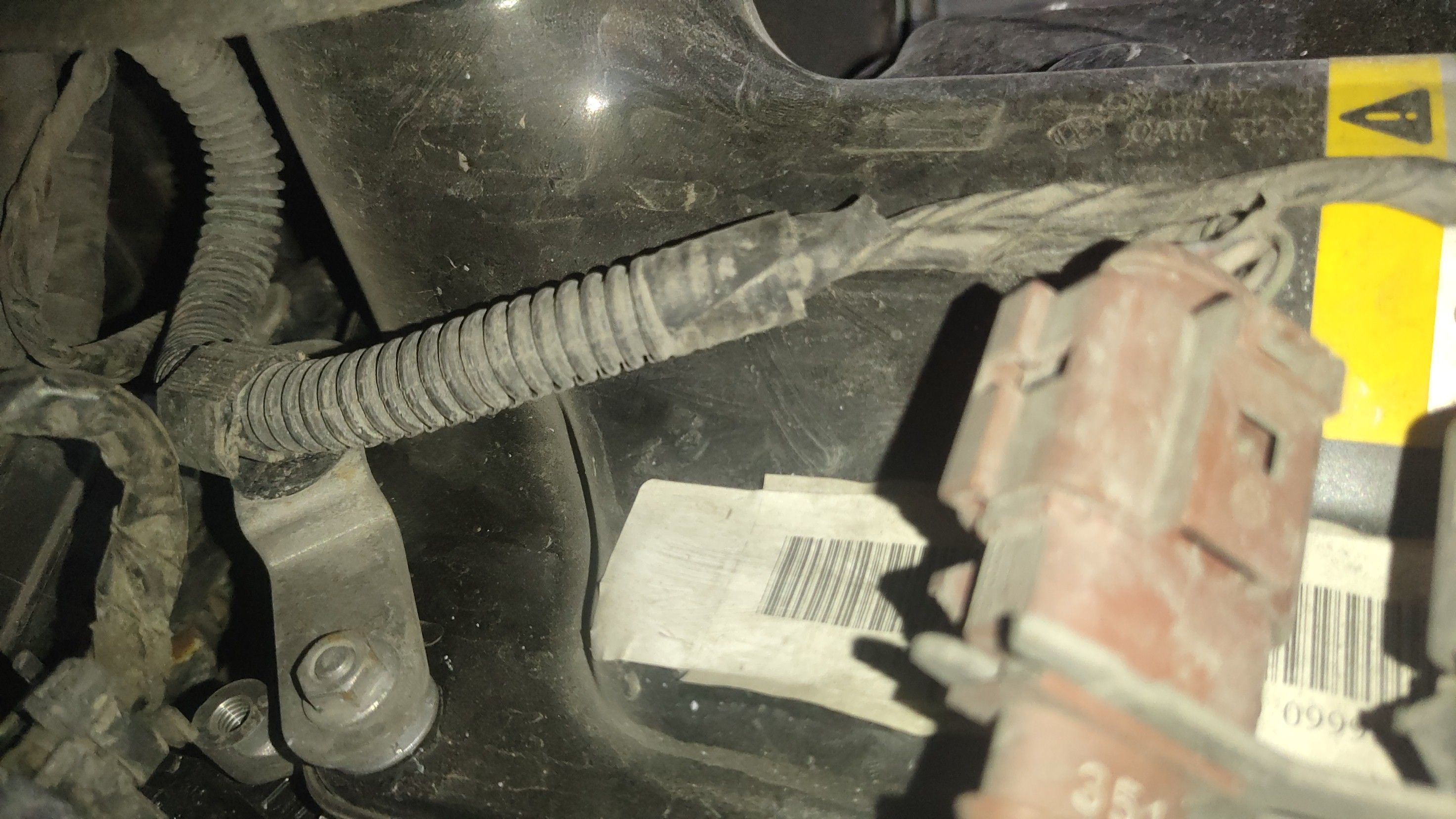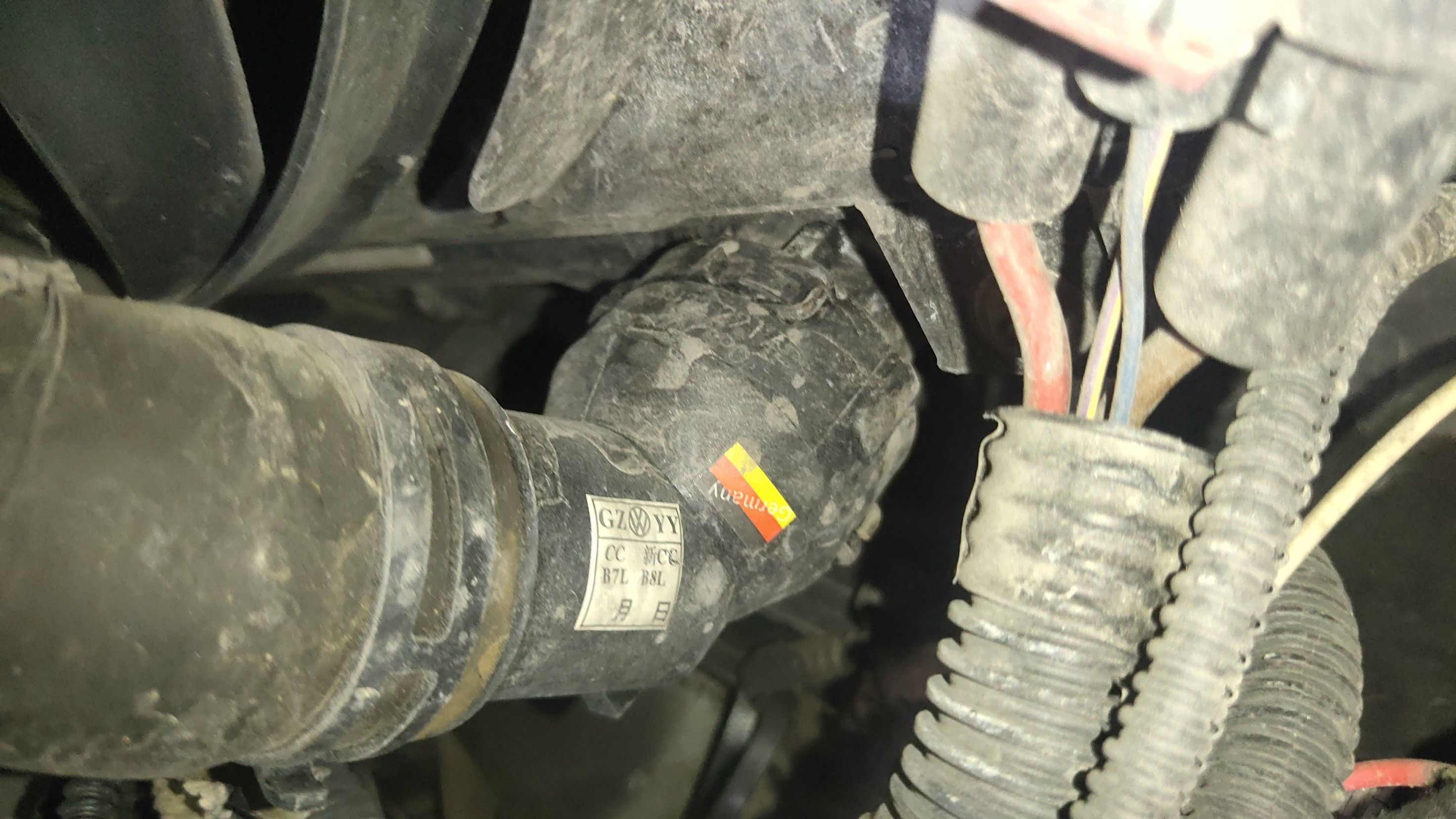 从下面观察全车水管也是后更换的,这个管头估计是车头事故撞破裂了,因为是硬质塑料的,所以碰撞的时候很容易损坏!