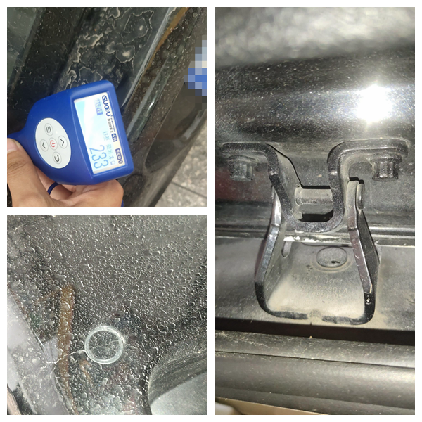 后备箱盖和后保险杠也都有喷漆,就在英俊以为没多大问题的时候,却看到后备箱盖的铰链螺丝全部拆下来过。
