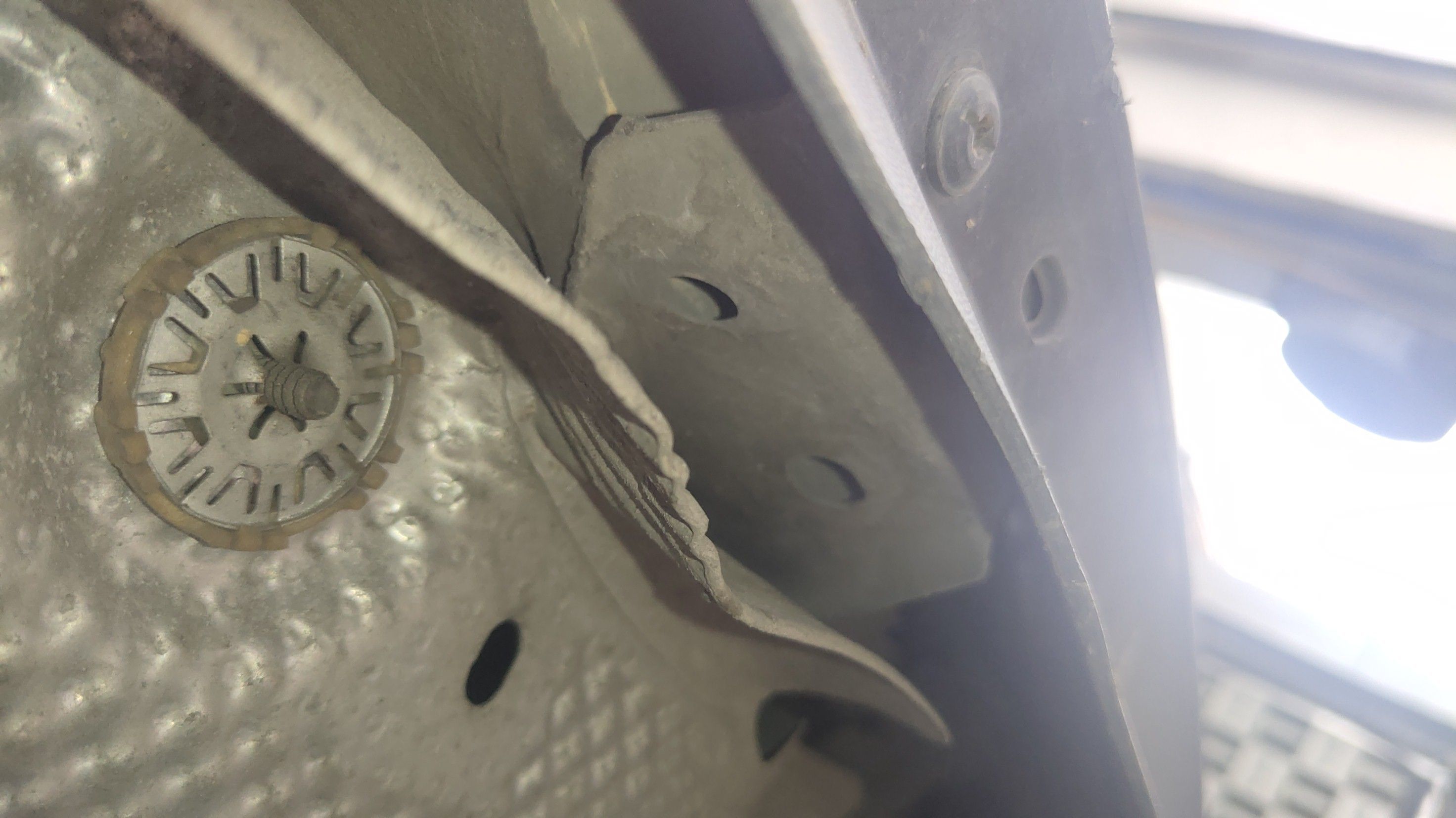 但是地毯存在拆卸痕迹,这台高尔夫是带天窗的,估计没逃过天窗漏水的通病!虽然没有泡水,但是地毯进水应该是跑不掉了,而且处理也比较及时,并未造成金属部件生锈!