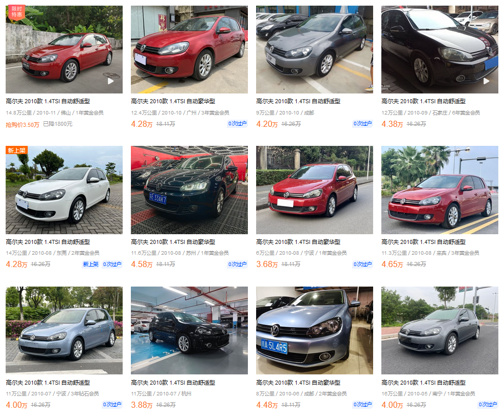 新车价格的坚挺不利于提高销量,但对于稳定的二手车保值率来说是一个强大的保证!如果大家有了解高尔夫的二手车行情,你会发现它跟卡罗拉、思域和雅阁这些主流日系车是一个层次的,特别的保值!就拿本期的主角来说,2010年上牌的10款1.4T自动豪华型,开了十二年的车,价格还要4万多!想不到吧!