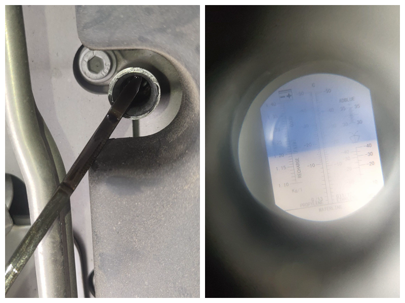 最后看一下机舱油液,机油变质了,需要及时更换!防冻液也出现冰点不足的问题了,现在夏天问题还不大,但是到了北方的冬天就不好说了!