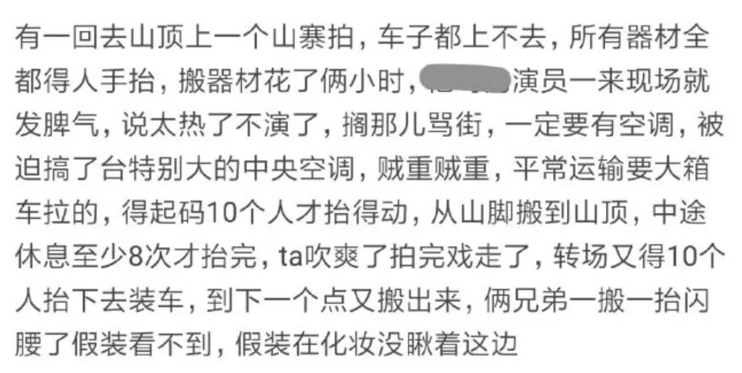 比如日薪208万的爽,曾有人爆料拍戏时还要求工作人员把空调运上山顶。