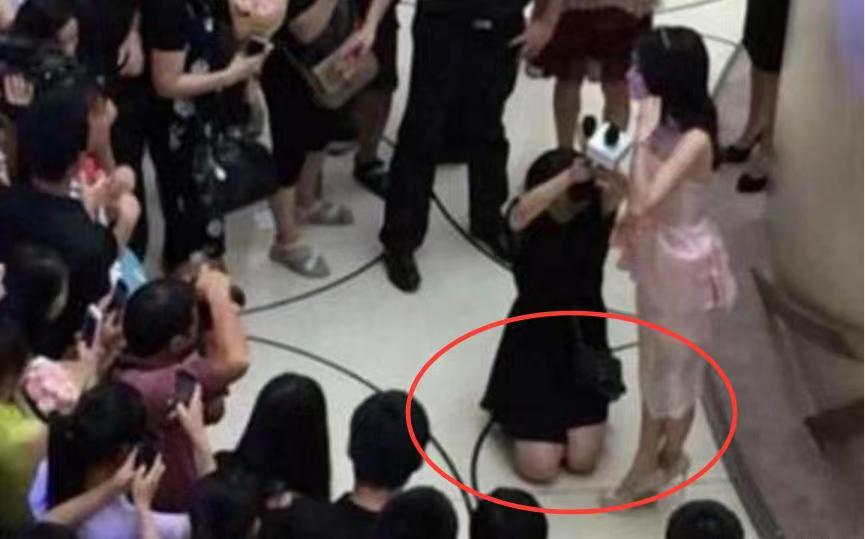 比如,秦X出席品牌活动,工作人员跪在地上为她举着话筒直到采访结束。