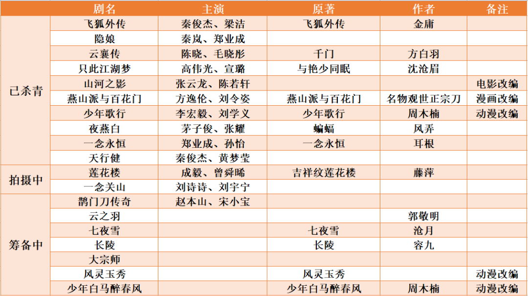 不过,从今年热闹的武侠剧市场来看,创作者们不再局限于武侠小说,IP来源更加灵活。