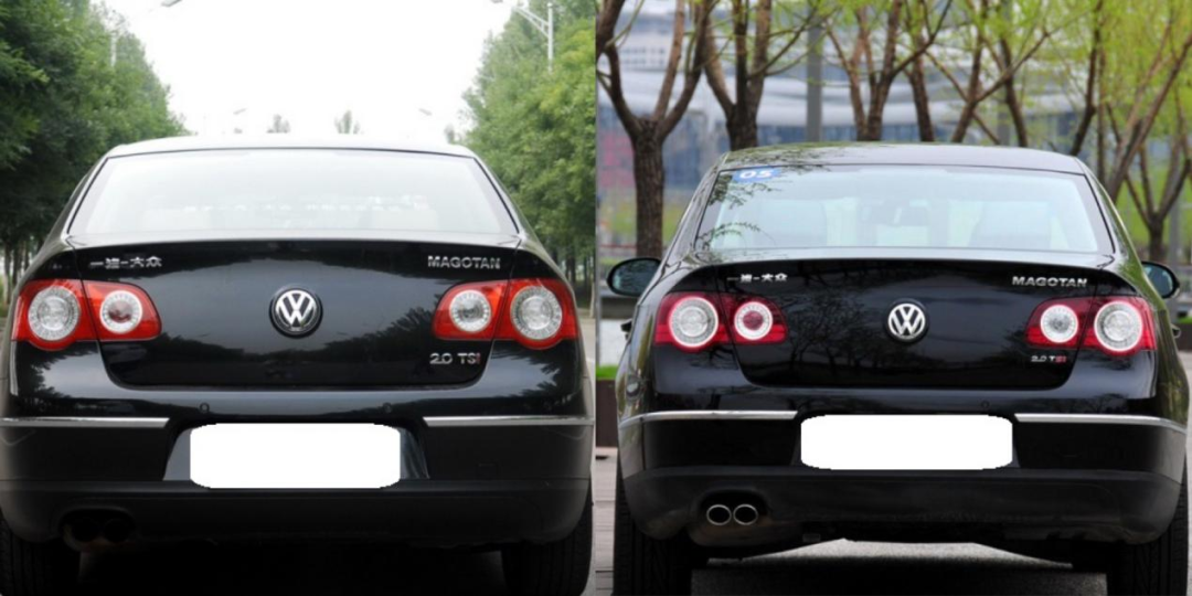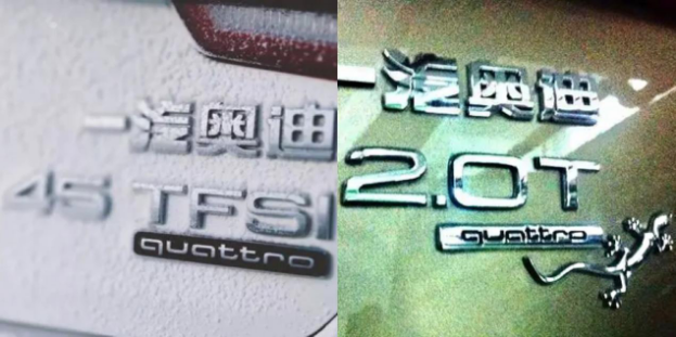 比如老款迈腾TSl没有颜色划分,就I是红色。但11款有的是三个字母全为红色,有的则只有I是红色,这依次代表的是1.4L、1.8L、2.0L三种排量。通过颜色进一步标识差别,好处是可以简练数字和符号,「车尾名片」不会太浮夸。