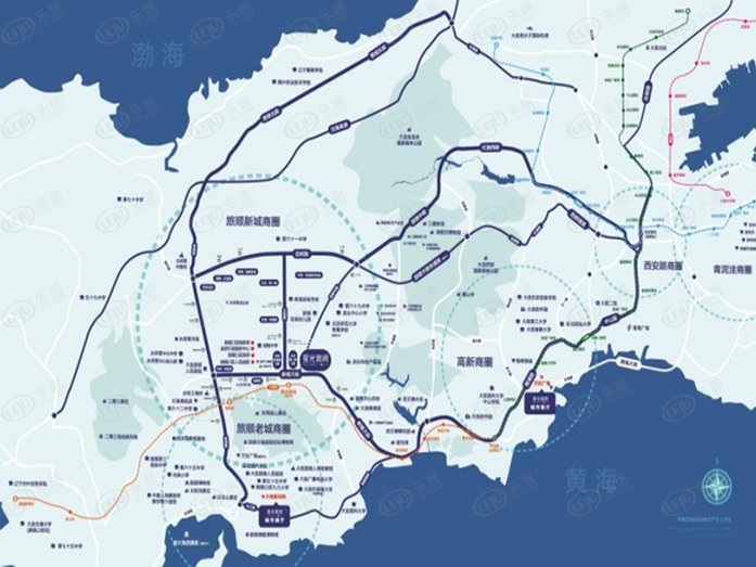 旅顺的新城板块是几大通往主城快速路合围区域,加上12号线穿过,交通相对立体,而较新的城市界面和区域路网,四四方方很规整,道路规划指出即采用高标准规格,路面宽阔,规划合理。