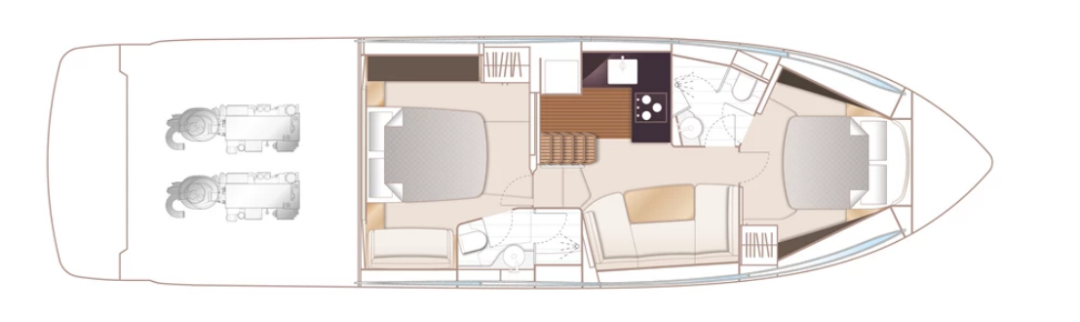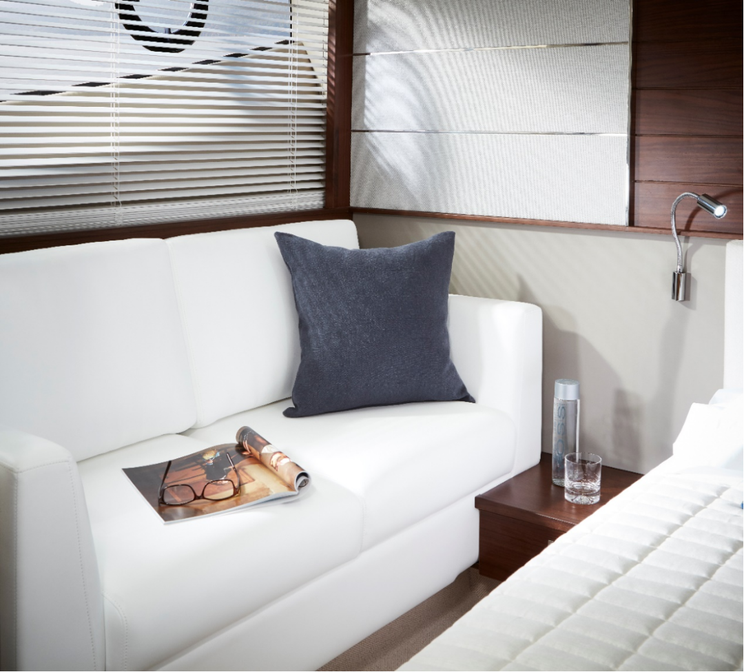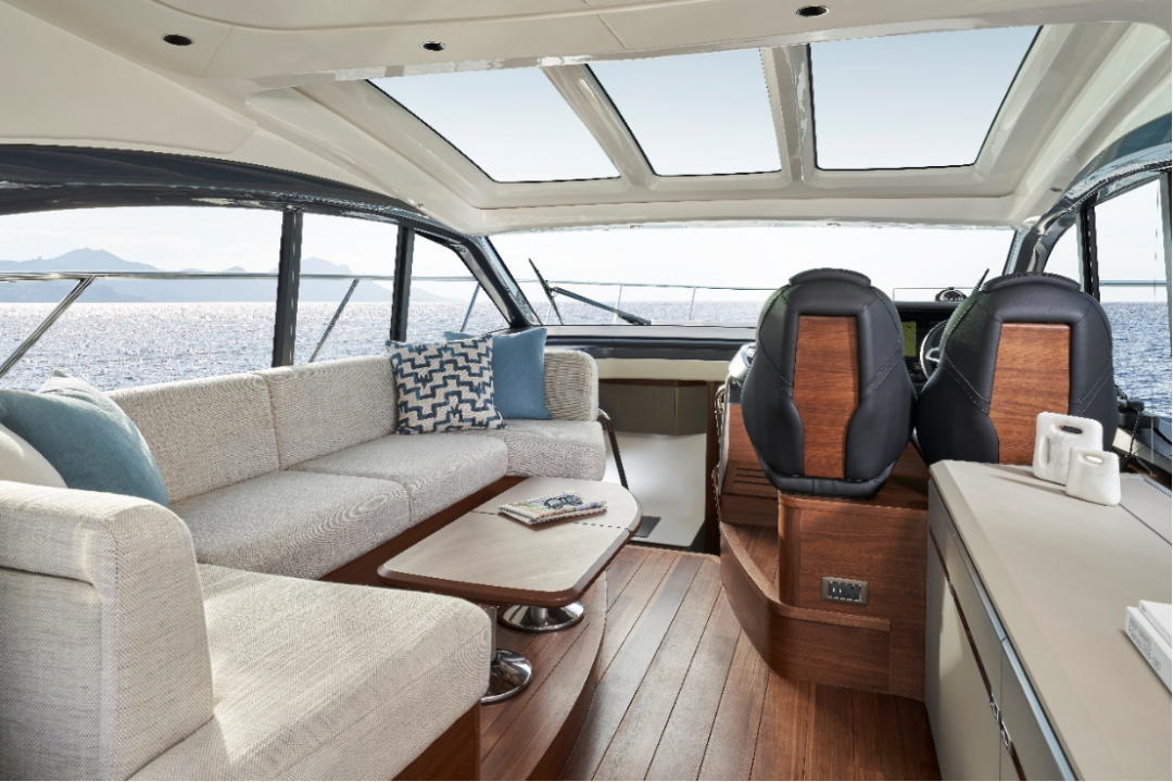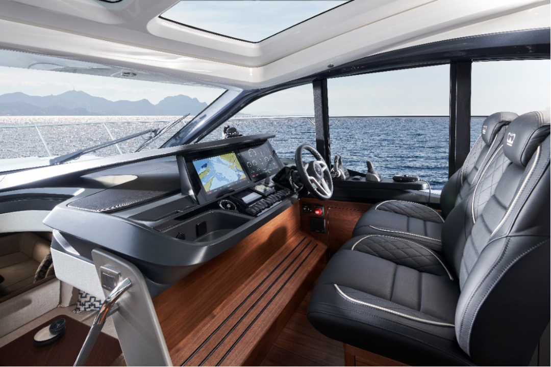 其他科技配置还包括Naim出品的高级音响系统,以及全新的Garmin On-Deck智能船舶管理系统——一套集成式远程连接解决方案,让您能够通过智能手机应用程序在几乎任何地方对选定的船上系统进行跟踪、监视和控制。