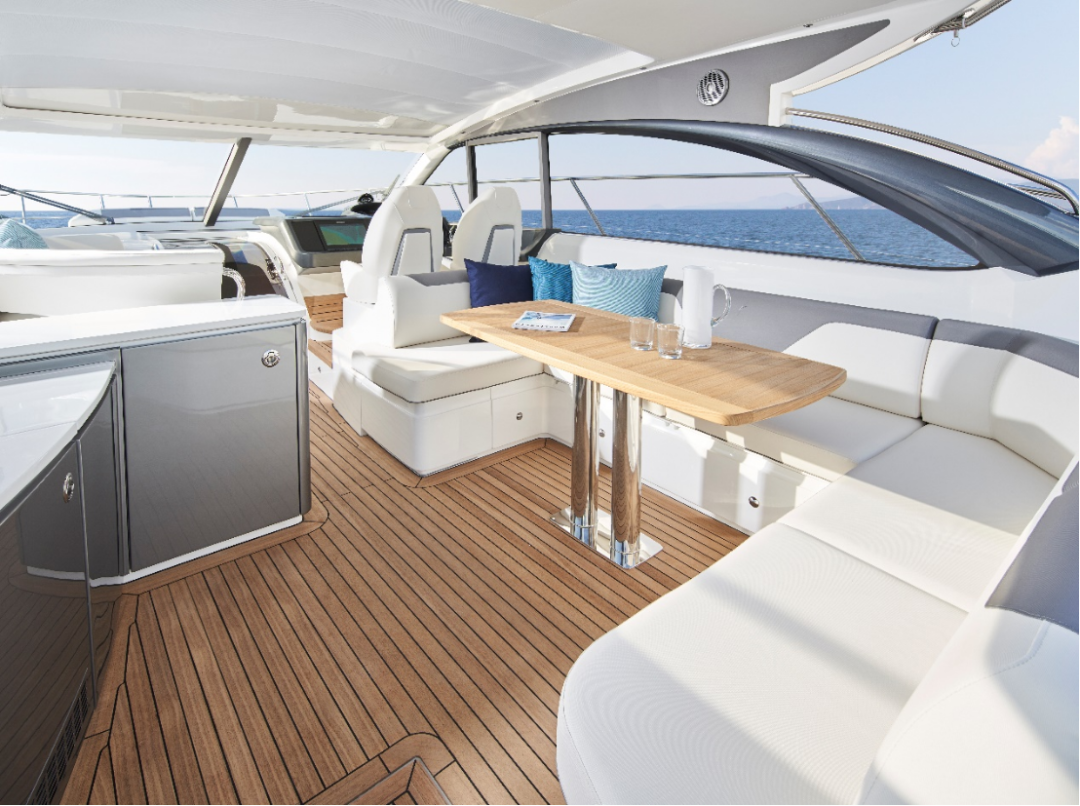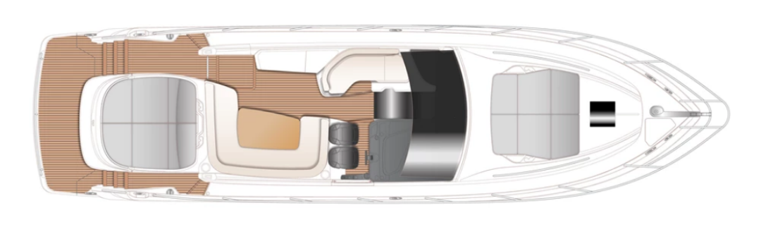 新款V50主甲板可提供Open(船尾开放式布局)和Deck Saloon(客厅封闭式布局)两种布局,满足不同船东对于空间的喜好。