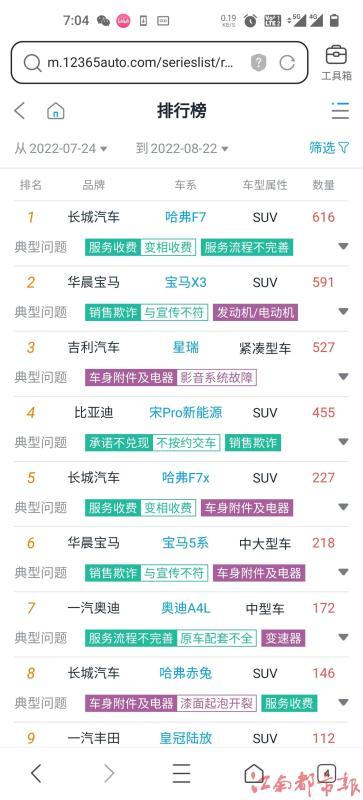 车机问题非个例,近30天车质网投诉排行第三
