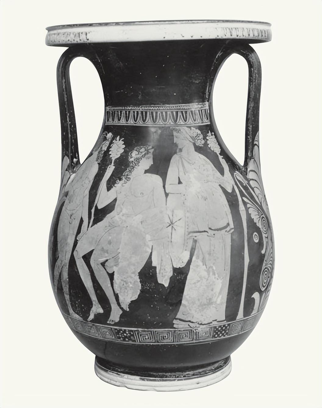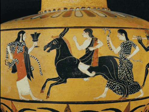对狄俄尼索斯的崇拜直到公元前6世纪中叶才在雅典确立起重要地位,这可能是庇西特拉图政策的结果,这两个陶瓶肯定要早于这个时期。