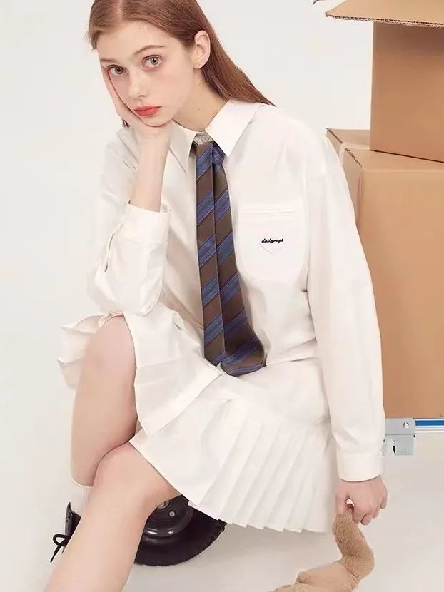 害怕把衬衫穿的过于老成,可以试试百褶裙/背带裙的搭配,韩系甜妹夸的就是你,再配上乐福鞋或运动鞋,元气+活力,超满~