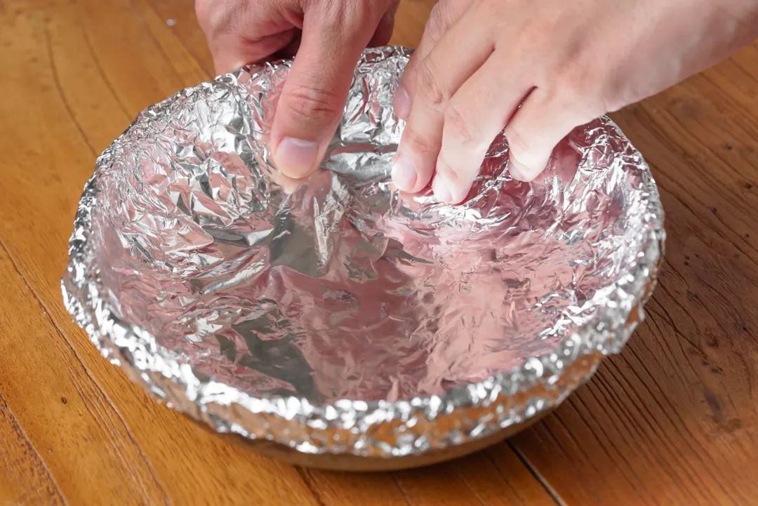 1.取一个稍有深度的碗,用锡纸做一个碗的容器备用。