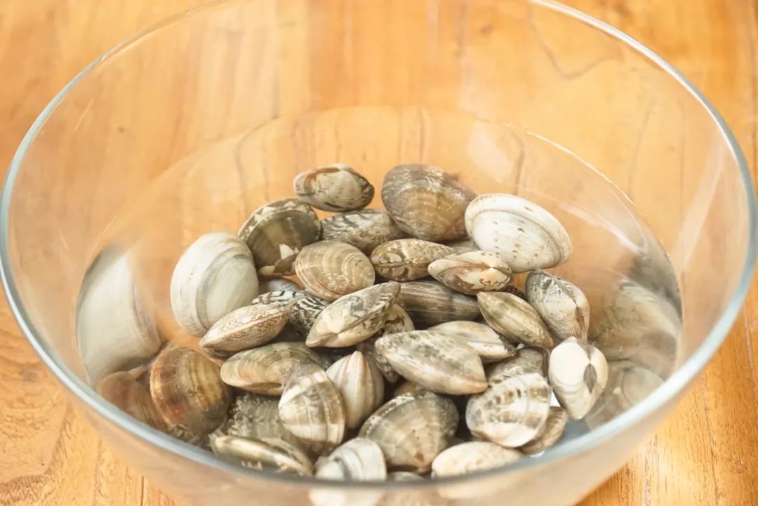 2.花甲洗净用清水没过,撒1勺盐吐沙浸泡2小时。
