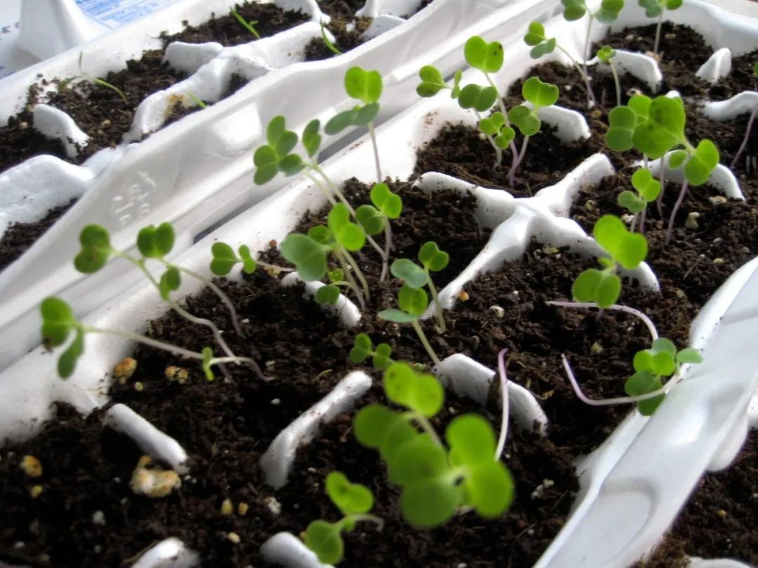 装鸡蛋的托盘通常都是免费赠送的,它们是可以降解的材料,其实它们也可以用来播种育苗,可以在底部戳几个孔之后,就可以将种子种进去了,幼苗长大后,就可以直接将鸡蛋托带幼苗的那一块切下来,带土种到土壤里就可以了。