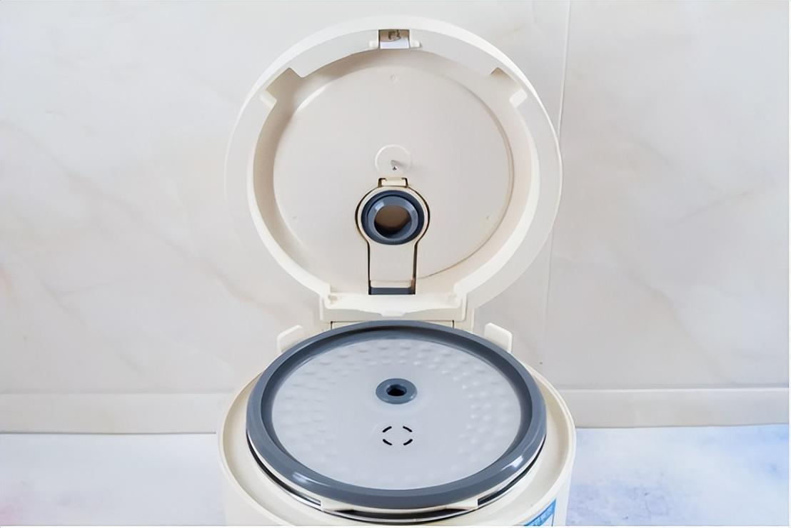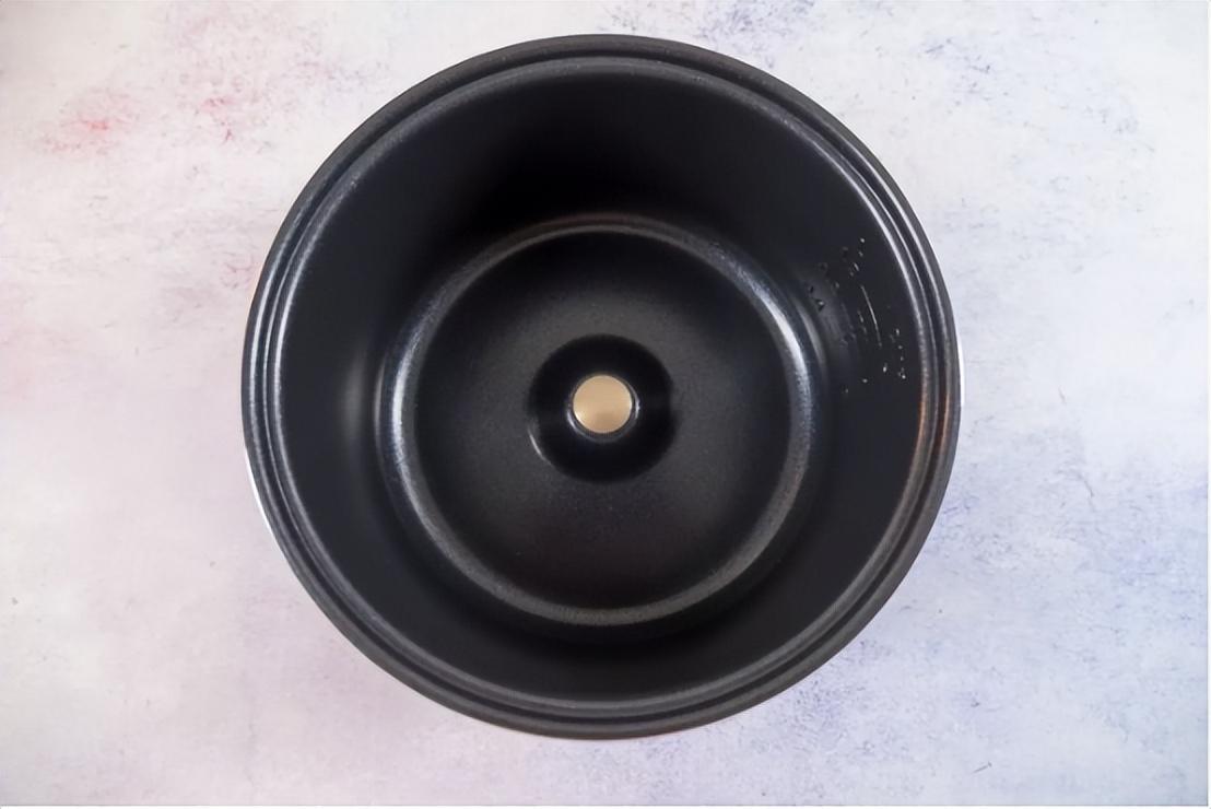 内胆是铝材质的,表面具有不粘锅的特点。锅的中间有个弹簧盖,这里是用来排出多余的水和米汤的。