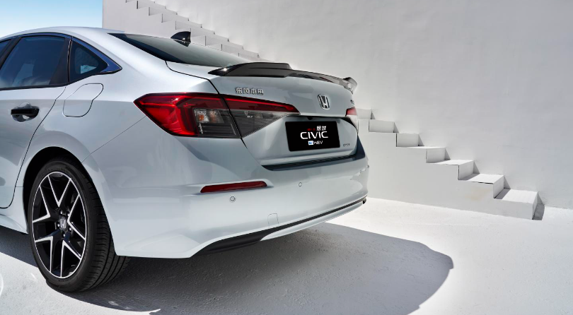 混动思域外观上和燃油版几乎没有什么区别,只有些许细节,例如品牌LOGO增加了蓝色元素进行点缀,车尾也多了e:HEV的标识。