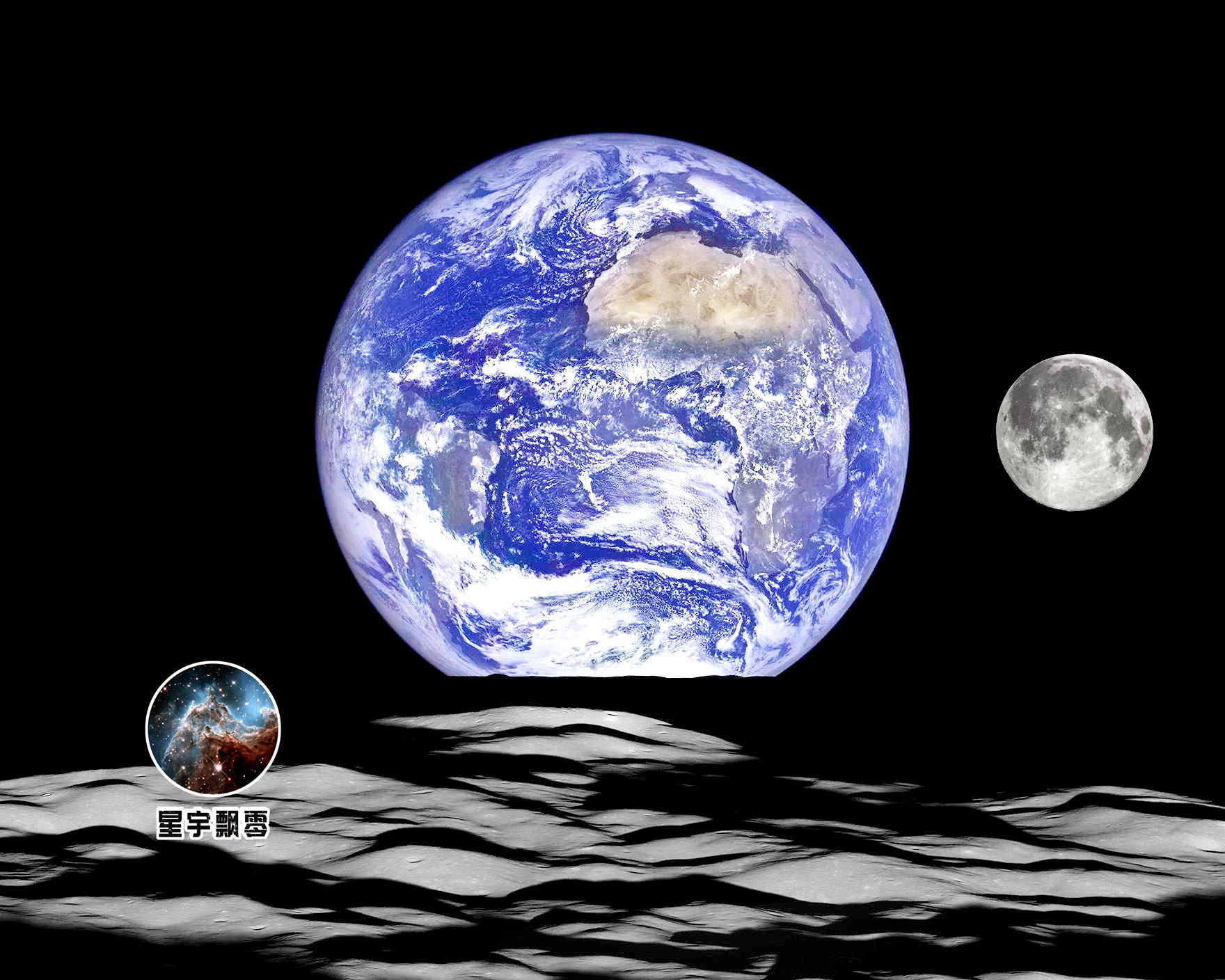 没上过月球的人没有直观的感受,但是我们可以用图片来模拟效果!大家在地球上都看见过月亮,月亮在天球上只是一个小小的盘面,视直径只有0.5度左右。在月球上看地球又会是什么样子的呢?