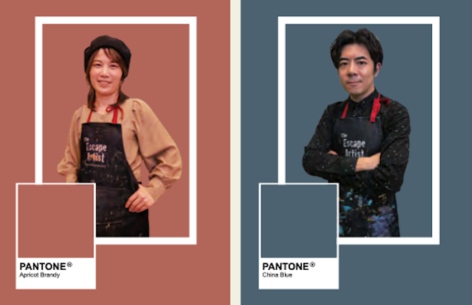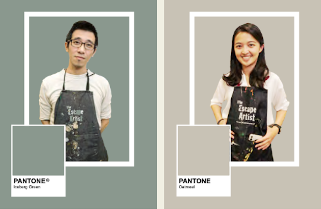 很巧的是,和黄伟雄一样,陈安荣的画作也运用粉红色系作为创作基地,画作底色混合着粉红色、橘色、黄色的亚克力颜料。而中间色坐垫的设计则选用了蓝色和咖啡色的渲染,整幅画作都传递着一种奇幻又奇特的视觉感受。